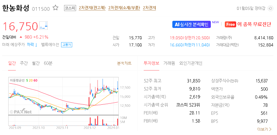 한농화성 가치 분석