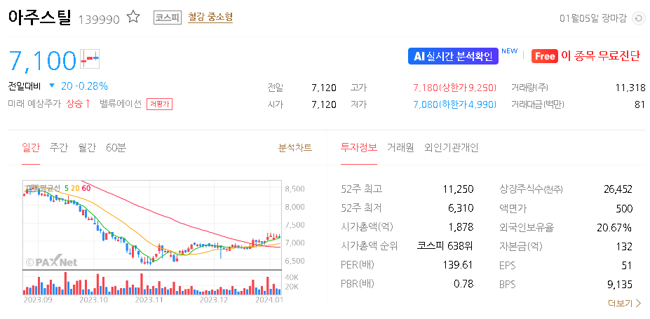 아주스틸 주가 분석