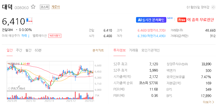 대덕 주가 분석