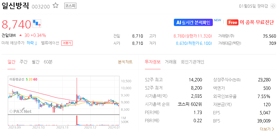 일신방직 가치 분석