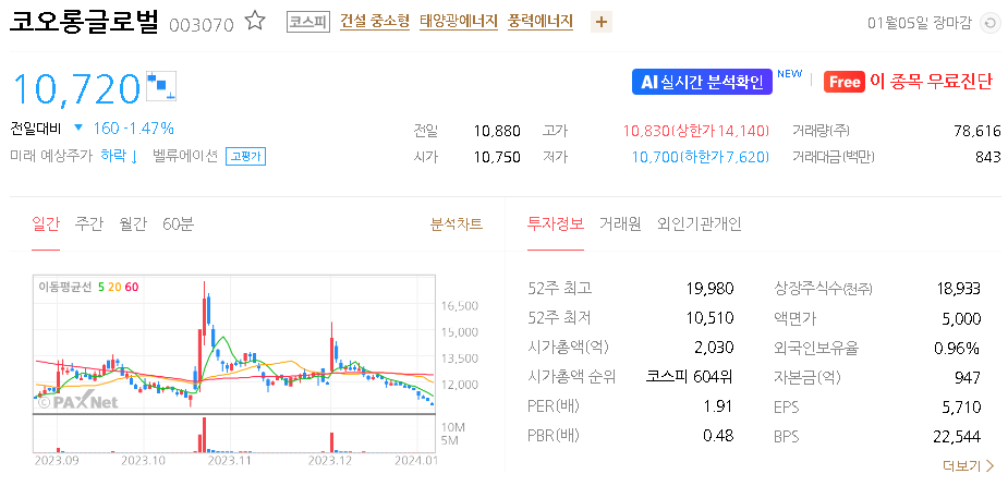 코오롱글로벌 주가 분석