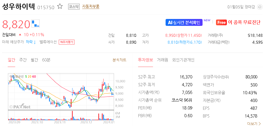 성우하이텍 주가 분석