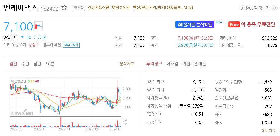 엔케이맥스 주가 분석