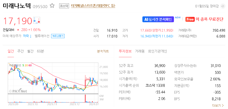 미래나노텍 주가 분석