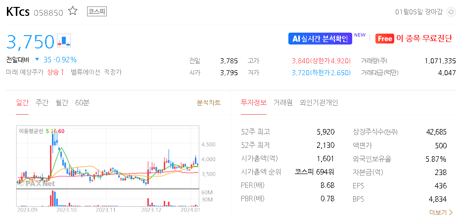 KTcs 주가 분석