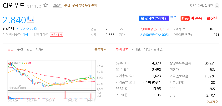 CJ씨푸드 주가 분석