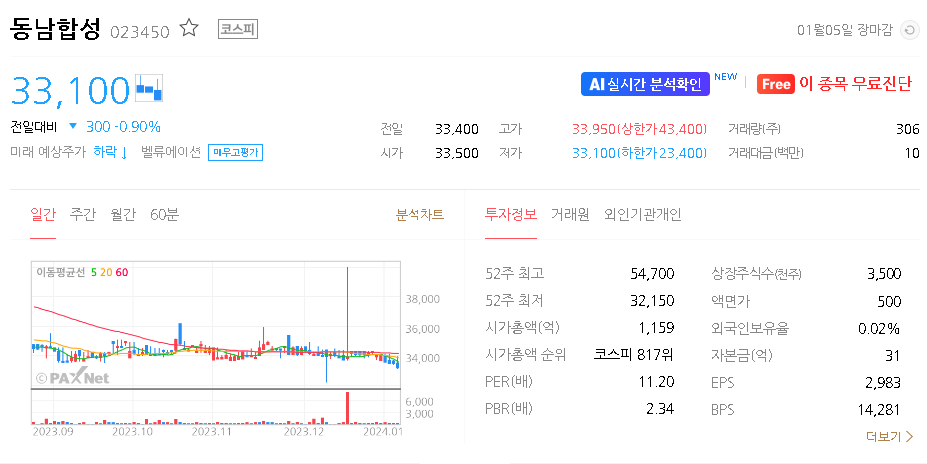 동남합성 주가 분석