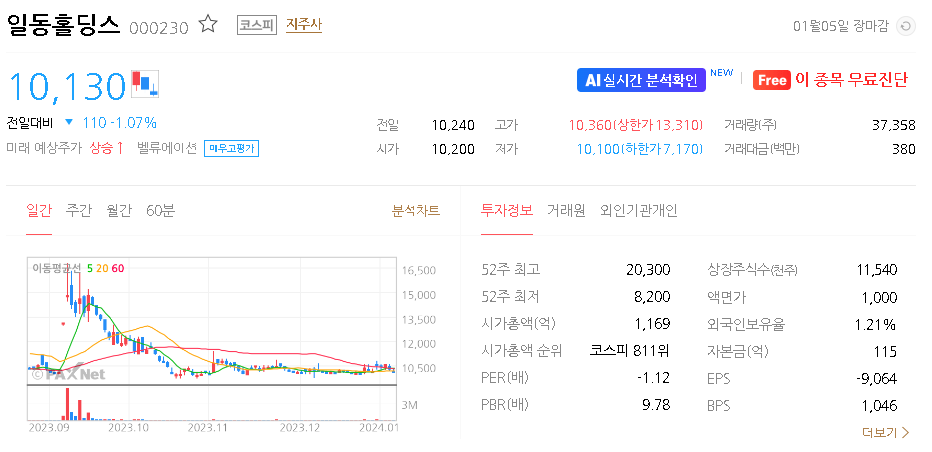 일동홀딩스 주식 결론