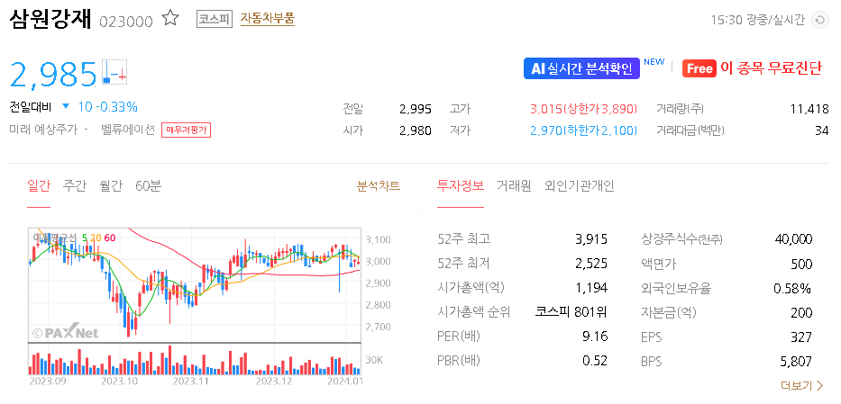 삼원강재 주가 분석