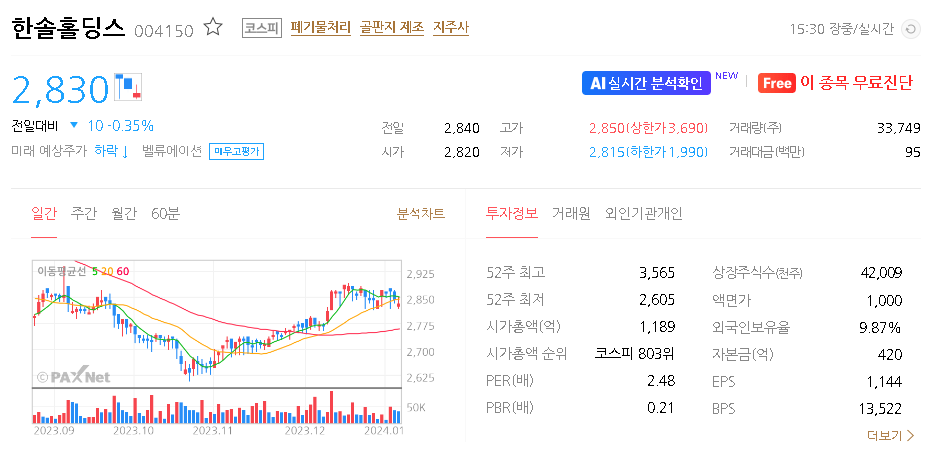 이 글에서는 한솔홀딩스 주가 전망과 목표 주가, 기업 정보에 대해서 설명합니다. 주식 투자의 핵심은 현재의 기업 가치보다는 미래의 가치를 예측하며 먼저 대응하는 것입니다. 투자 대상을 결정하기 위해 먼저 현재 기업 상태와 수치를 검토해야 합니다. 한솔홀딩스 주식의 주요 현황과 투자 정보를 확인하시고 주식 투자에 유용한 정보들을 모아두었으니 투자 결정에 도움을 받으실 수 있을 것입니다.