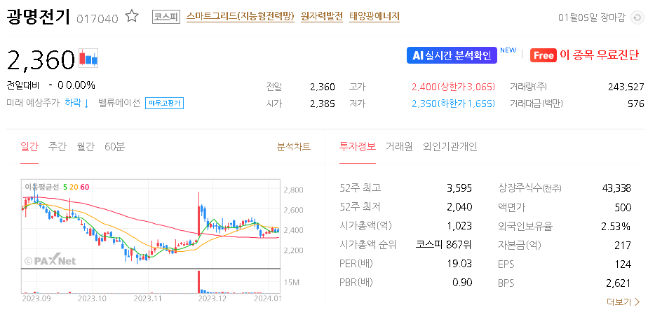 광명전기 주가 분석