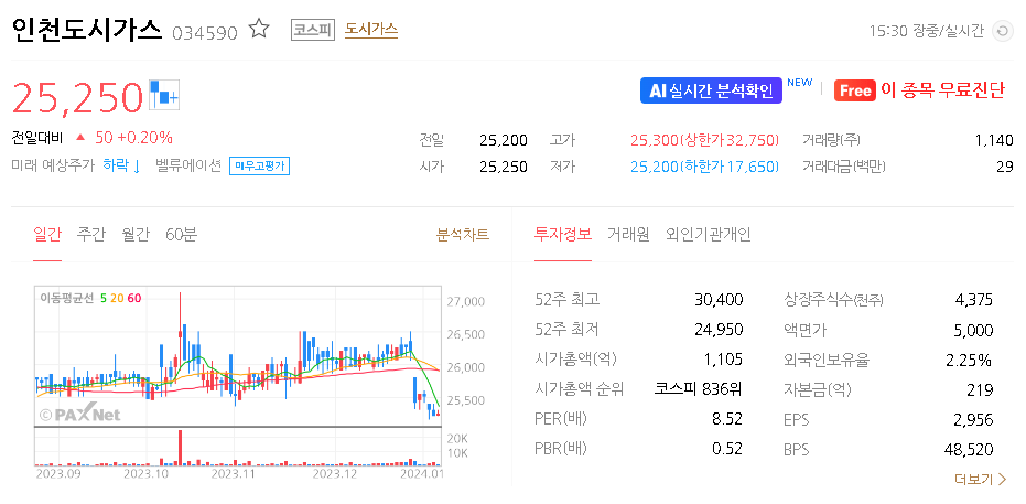 인천도시가스 주가 분석
