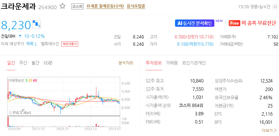 크라운제과 주식 결론