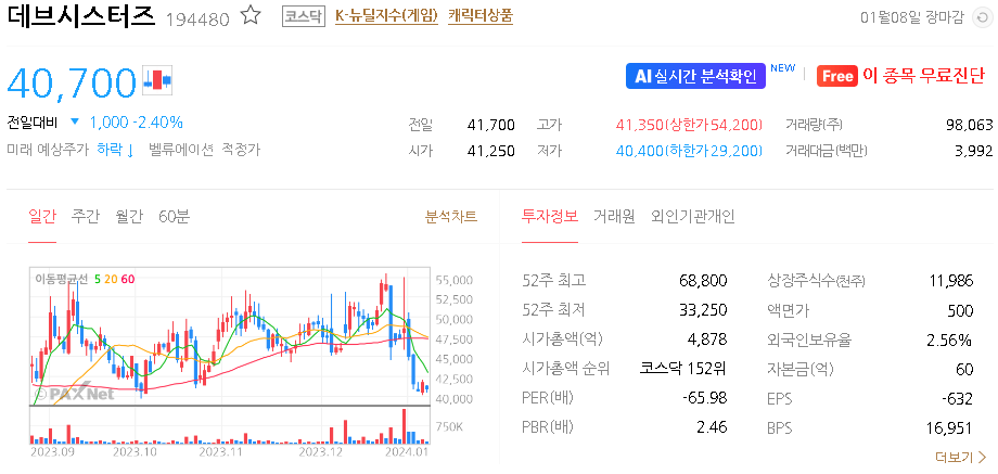 데브시스터즈 주가 분석