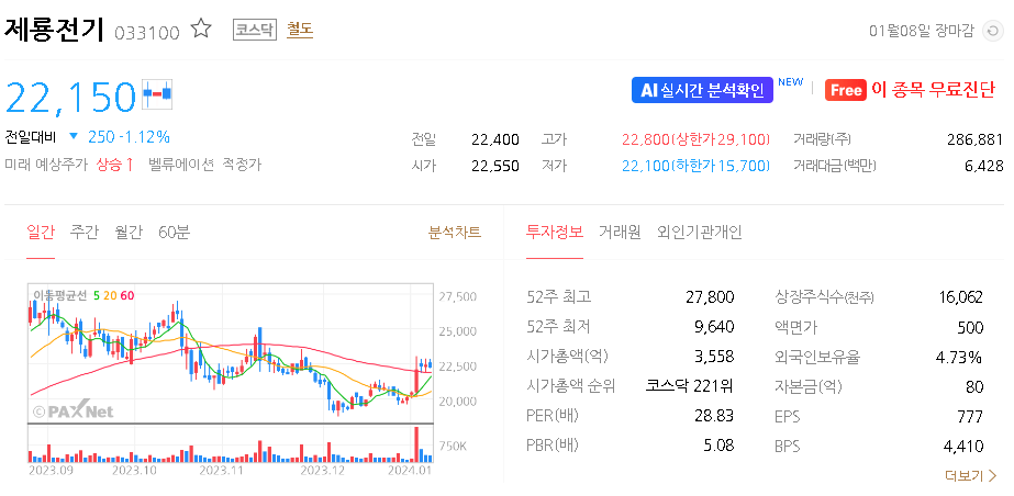 제룡전기 주가 분석