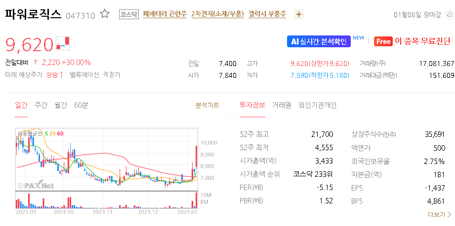 파워로직스 주가 분석