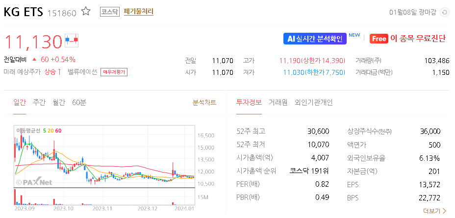이 글에서는 KG ETS 주가 전망과 목표 주가, 기업 정보에 대해서 설명합니다. 주식 거래에서 중요한 부분은 현재 기업 가치보다는 미래의 기업 가치를 예측하고 먼저 행동하는 것입니다. 투자할 종목을 고르기 전에 현재 기업의 상황과 지표를 살펴보는 것이 중요합니다. KG ETS 주식의 주요 현황과 투자 정보를 확인하시고 주식 투자에 도움을 줄 자료들을 모아 두었으니 투자에 도움을 받으시길 바랍니다.
