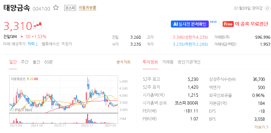 태양금속 주가 분석