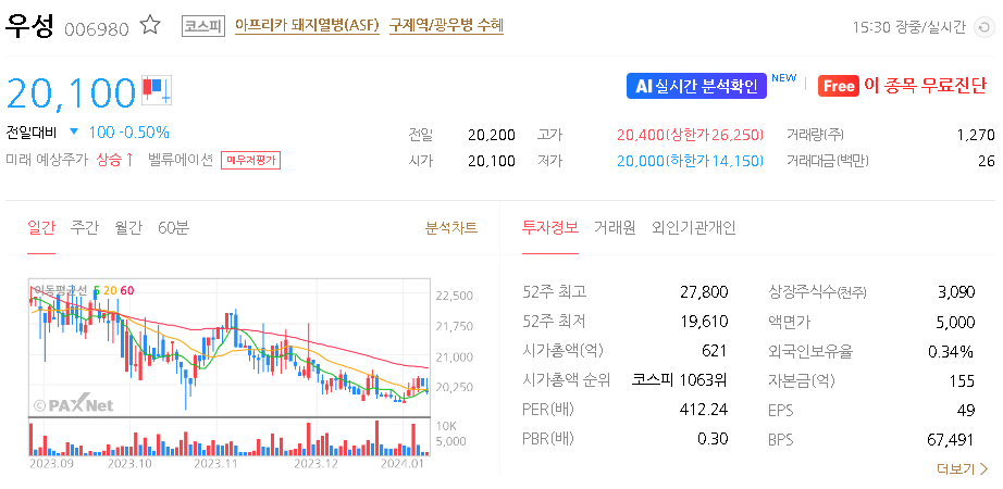 우성 주가 분석