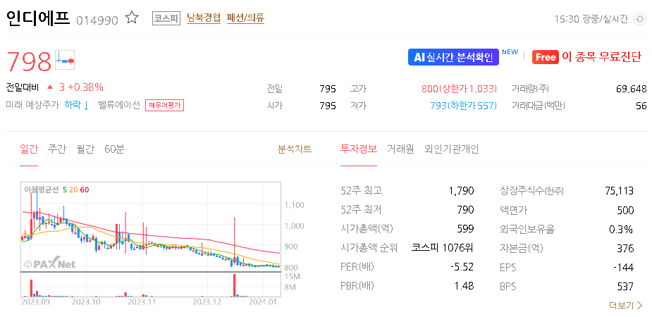 인디에프 주가 분석
