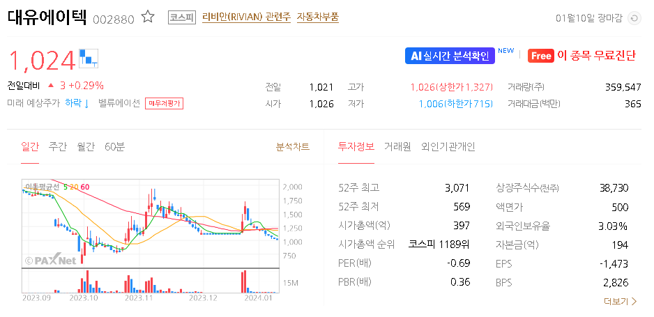 이 글에서는 대유에이텍 주가 전망과 목표 주가, 기업 정보에 대해서 설명합니다. 주식 거래에서 중요한 부분은 현재 기업 가치보다는 미래의 기업 가치를 예측하고 먼저 행동하는 것입니다. 투자할 종목을 고르기 전에 현재 기업의 상황과 지표를 살펴보는 것이 중요합니다. 대유에이텍 주식의 주요 현황과 투자 정보를 확인하시고 주식 투자에 도움이 될 만한 정보들을 모아 놓았으니 투자를 고려하실 때 참고하세요.