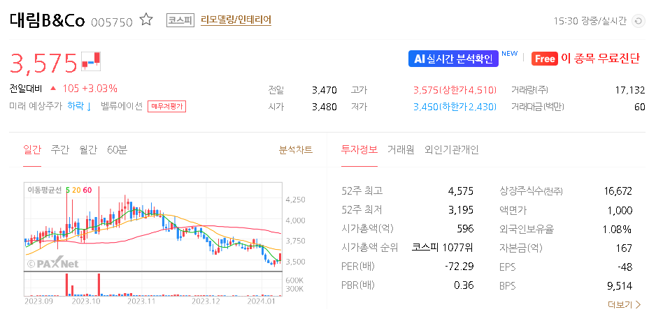 대림B&Co 주식 결론