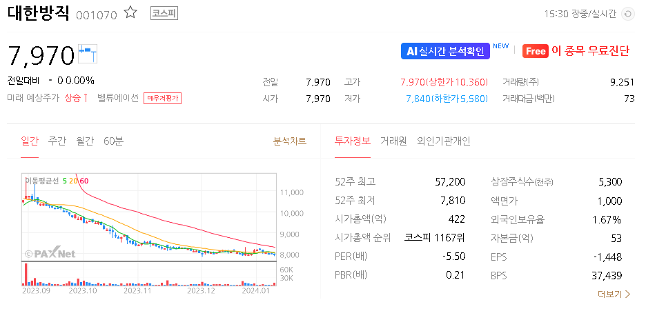 대한방직 주가 분석