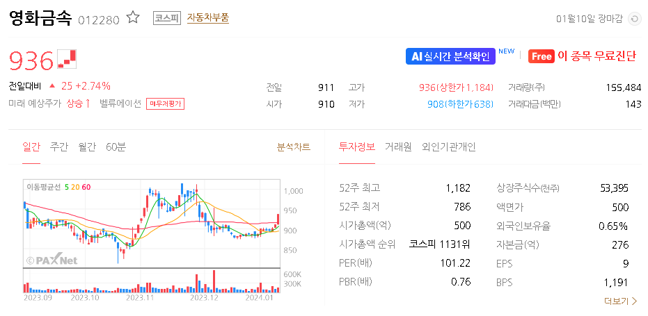 영화금속 주가 분석