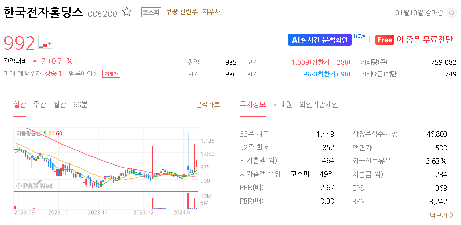 한국전자홀딩스 주식 결론
