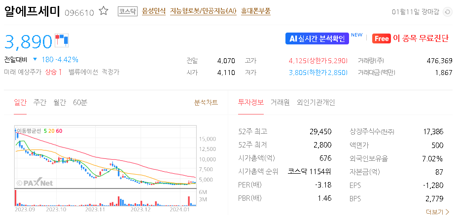 알에프세미 주가 분석