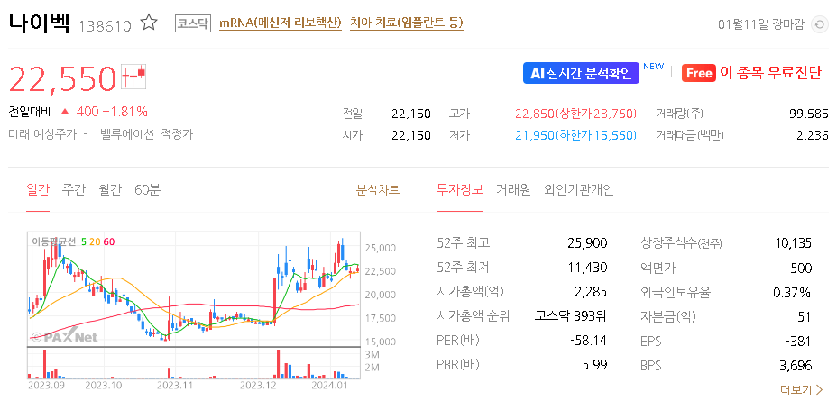 나이벡 주가 분석