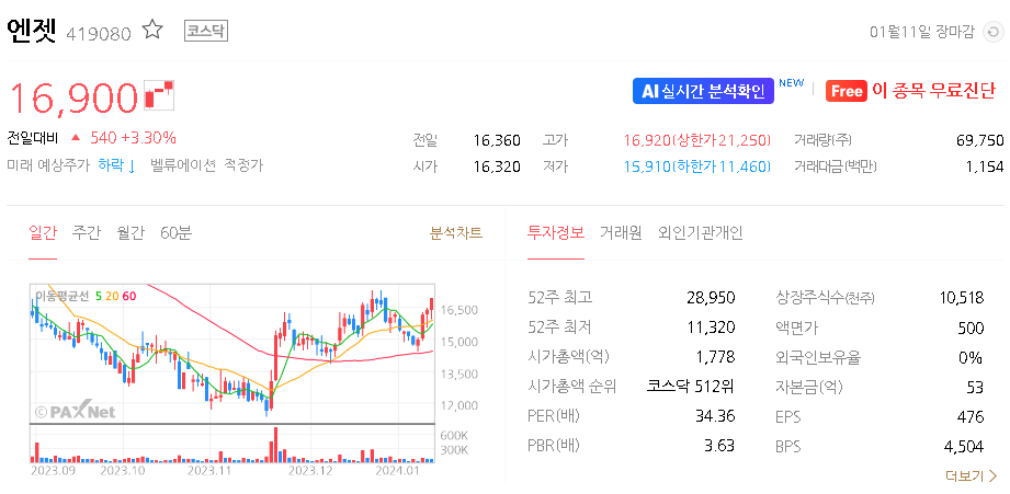 이 글에서는 엔젯 주가 전망과 목표 주가, 기업 정보에 대해서 설명합니다. 주식 거래에서 중요한 부분은 현재 기업 가치보다는 미래의 기업 가치를 예측하고 먼저 행동하는 것입니다. 투자할 종목을 고르기 전에 현재 기업의 상황과 지표를 살펴보는 것이 중요합니다. 엔젯 주식의 주요 현황과 투자 정보를 확인하시고 주식 투자를 고려하고 계신다면 유용한 정보들을 모아 놓은 자료를 확인해보세요.
