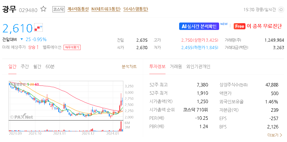 광무 주가 분석