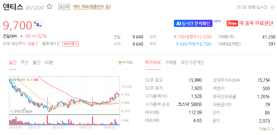덴티스 주가 분석
