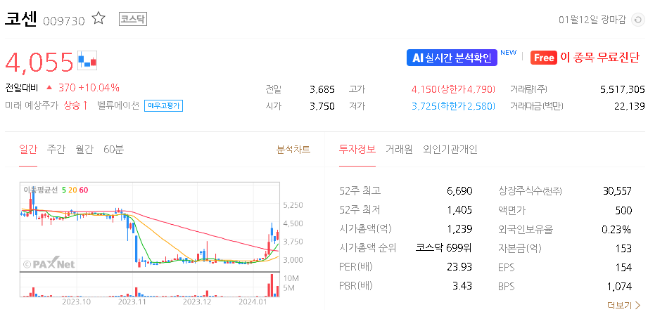이 글에서는 코센 주가 전망과 목표 주가, 기업 정보에 대해서 설명합니다. 주식 투자의 중심은 미래의 기업 가치를 예측하고 선제적으로 움직이는 것입니다. 투자할 종목을 고르기 전에 현재 기업 상태와 지표를 살펴야 합니다. 코센 주식의 주요 현황과 투자 정보를 확인하시고 주식 투자에 도움을 줄 자료들을 모아 두었으니 투자에 도움을 받으시길 바랍니다.