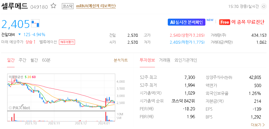 이 글에서는 셀루메드 주가 전망과 목표 주가, 기업 정보에 대해서 설명합니다. 주식 거래에서 중요한 부분은 현재 기업 가치보다는 미래의 기업 가치를 예측하고 먼저 행동하는 것입니다. 투자할 종목을 고르기 전에 현재 기업의 상황과 지표를 살펴보는 것이 중요합니다. 셀루메드 주식의 주요 현황과 투자 정보를 확인하시고 주식 투자에 도움이 되는 정보들을 모아 제공하니 투자에 도움을 받으실 수 있을 것입니다.