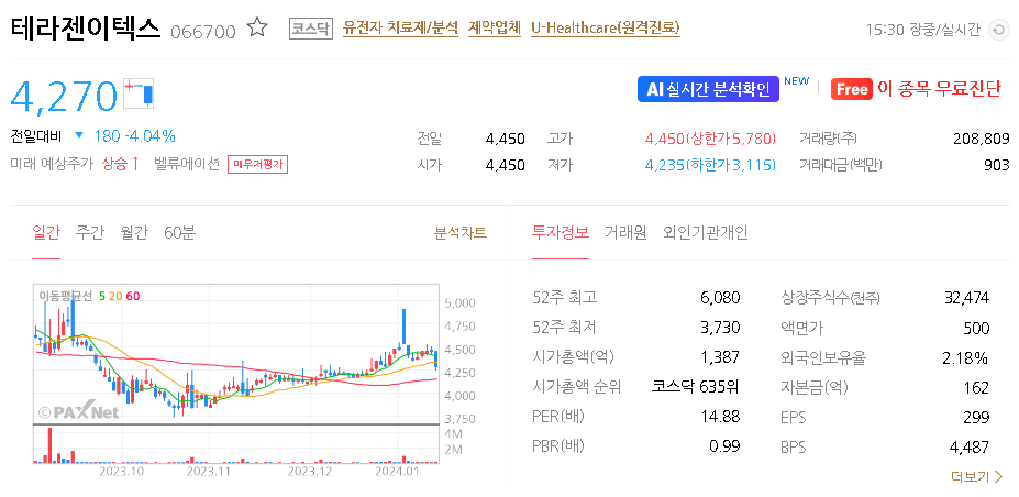 테라젠이텍스 주가 분석