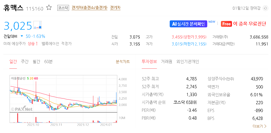 외국인 보유 비중은 5.89% 이며 장중 거래량은 336,882원 을 기록했습니다. 매출액은 4,900억 원을 달성했습니다. EPS는 없음원이며 휴맥스 주식 배당수익률은 % 입니다.