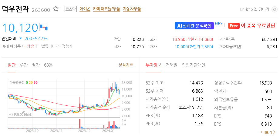 덕우전자 주가 분석