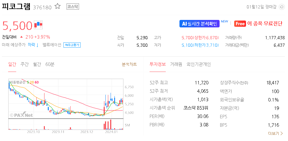 피코그램 주가 분석