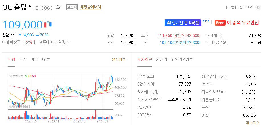 이 글에서는 OCI홀딩스 주가 전망과 목표 주가, 기업 정보에 대해서 설명합니다. 주식 투자의 핵심은 미래 기업 가치를 예측하고 선제적으로 대응하는 것입니다. 투자 대상을 선택하기 전에 현재 기업 상황과 지표를 조사해야 합니다. OCI홀딩스 주식의 주요 현황과 투자 정보를 확인하시고 주식 투자에 도움이 될 만한 정보들을 모아 놓았으니 투자 시 참고하시기 바랍니다.