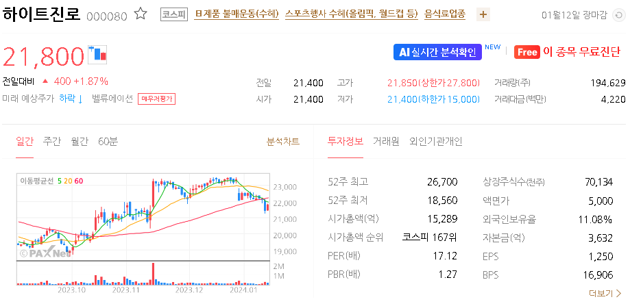 하이트진로 주가 분석