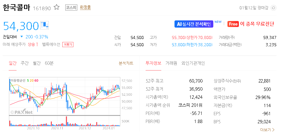 이 글에서는 한국콜마 주가 전망과 목표 주가, 기업 정보에 대해서 설명합니다. 주식 시장에서 중요한 것은 미래의 기업 가치를 예측하고 선제적으로 움직이는 것입니다. 투자 대상을 선택하기 전에 현재 기업의 현황과 데이터를 확인하는 것이 필요합니다. 한국콜마 주식의 주요 현황과 투자 정보를 확인하시고 주식 투자를 고민하고 계시다면 유용한 정보들을 모아 놓은 자료를 확인해보세요.