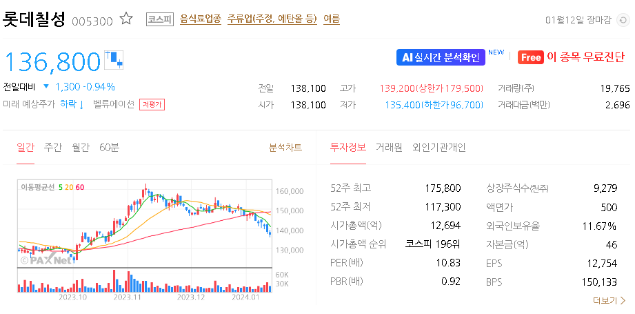 이 글에서는 롯데칠성 주가 전망과 목표 주가, 기업 정보에 대해서 설명합니다. 주식 거래에서 중요한 부분은 현재 기업 가치보다는 미래의 기업 가치를 예측하고 먼저 행동하는 것입니다. 투자할 종목을 고르기 전에 현재 기업의 상황과 지표를 살펴보는 것이 중요합니다. 롯데칠성 주식의 주요 현황과 투자 정보를 확인하시고 주식 투자에 유용한 정보들을 한 곳에 정리해두었으니 투자에 도움 받으시길 바랍니다.
