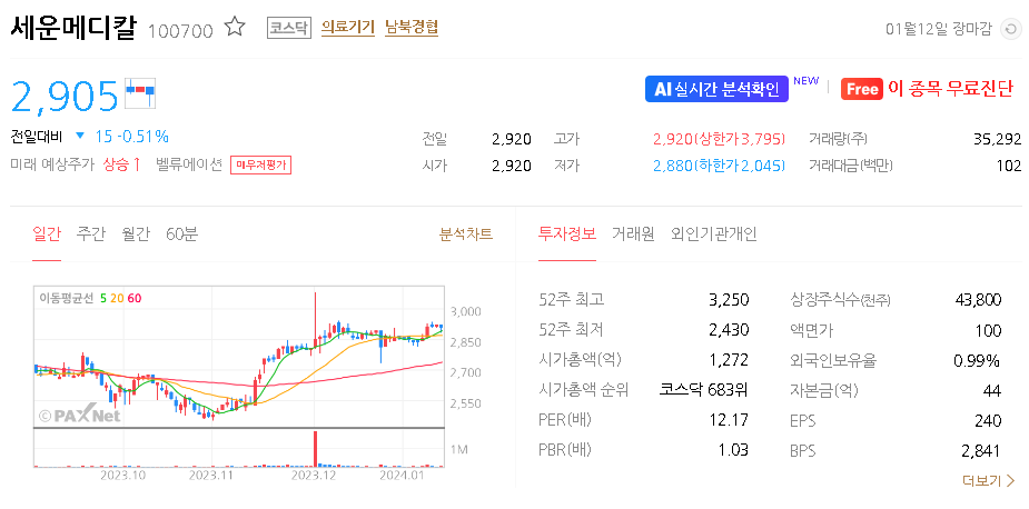 이 글에서는 세운메디칼 주가 전망과 목표 주가, 기업 정보에 대해서 설명합니다. 주식 거래에서 중요한 점은 미래 기업 가치를 예상하며 선제적으로 움직이는 것입니다. 투자할 종목을 고르기 전에 현재 기업 상황과 지표를 살펴야 합니다. 세운메디칼 주식의 주요 현황과 투자 정보를 확인하시고 주식 투자에 도움이 될 만한 정보들을 모아 놓았으니 투자를 고려하실 때 참고하세요.