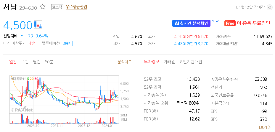 서남 주가 분석