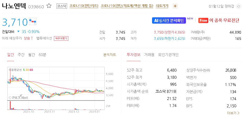 나노엔텍 주가 분석