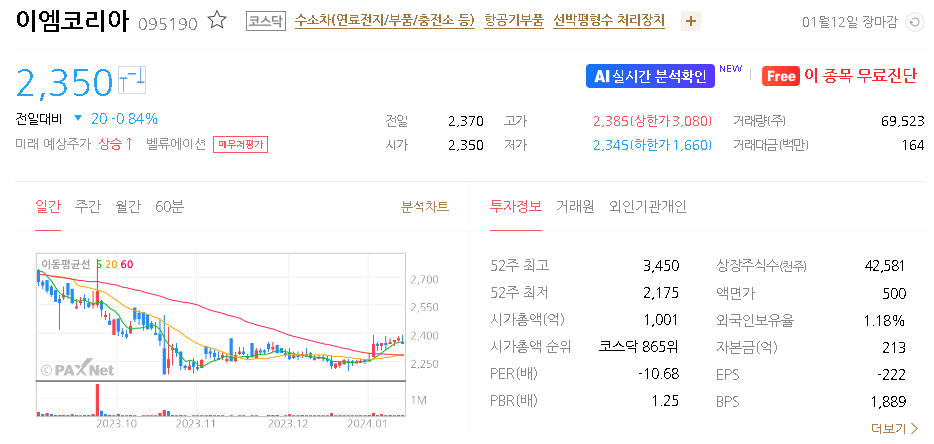 이엠코리아 주가 분석