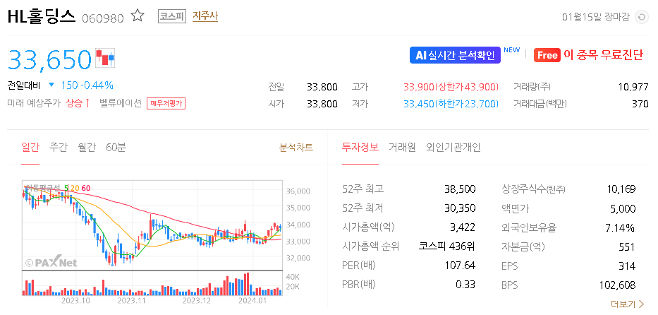 HL홀딩스 주가 분석