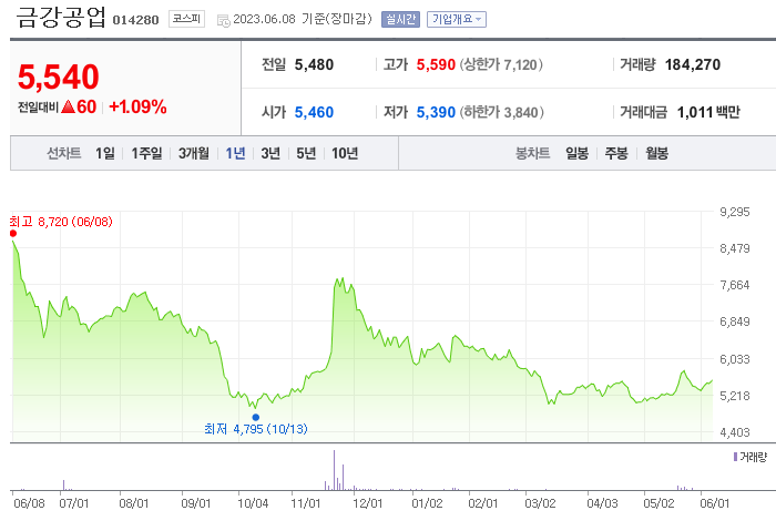 금강공업 주가 전망 현황과 주식에서 기업 순위